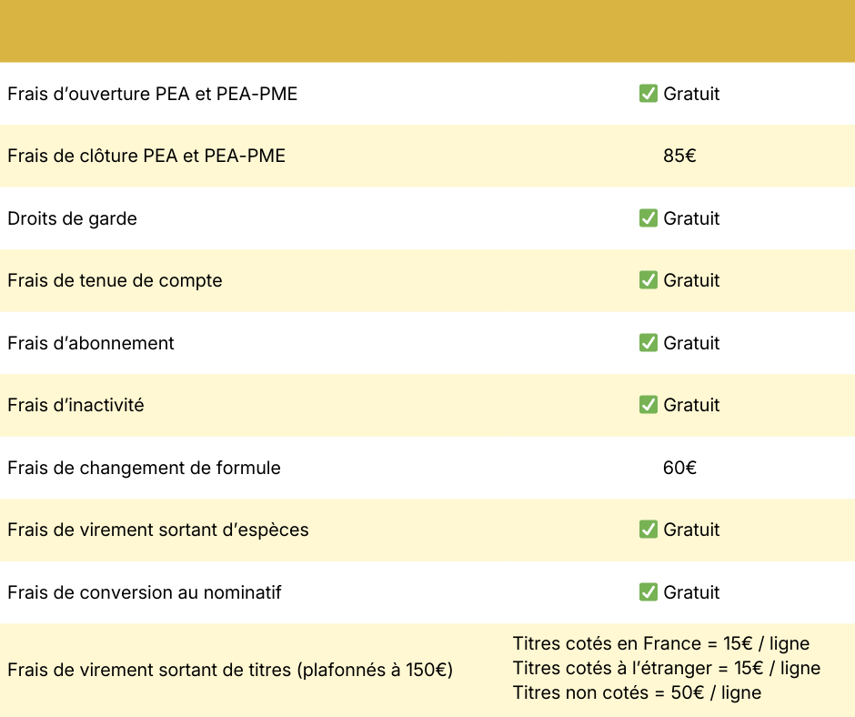 ❌ Malgré des frais nettement moins élevés que dans une banque traditionnelle, pour les investisseurs les plus actifs qui passent plusieurs ordres par mois, le PEA de Fortuneo n’est pas forcément le moins cher du marché même s’il demeure une option solide pour la majorité des particuliers.