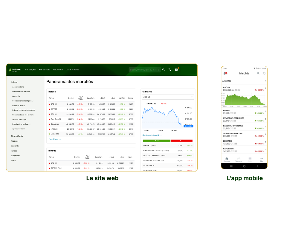 Voici à quoi ressemblent l’interface du site web et de l’application mobile de Fortuneo :