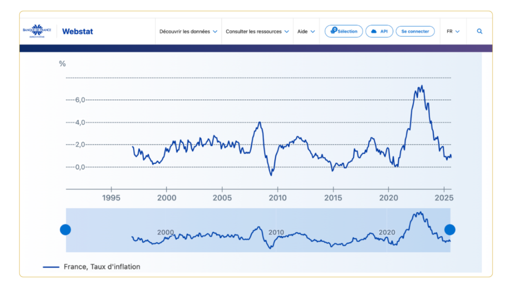 Vous pouvez consulter le taux d’inflation actuel en France sur le site de la Banque de France en cliquant ici.